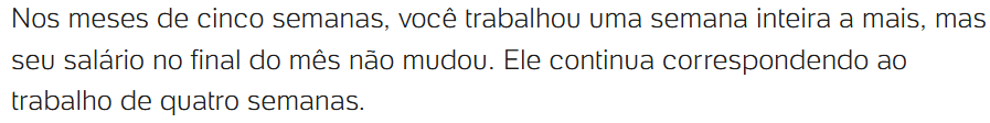Só que tem um pequeno detalhe : Esse mês de quatro semanas não existe. O ano tem um mês com 28 dias, todos os outros têm 30 ou 31 dias. Convencionalmente adota-se o chamado “ano comercial”, 12 meses de 30 dias, para tudo que envolva cálculos financeiros. Sendo muito bonzinho daria pra dizer que a empresa “fica devendo” 5 dias (365-360) ao trabalhador, ou 1/6 de salário.