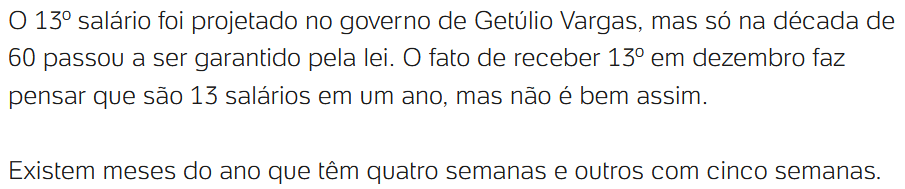 Infelizmente, Dezembro também é quando começa a circular aquela corrente de que o décimo terceiro é uma fraude, um engodo, uma enganação sob controle dos illuminati reptilianos. O “raciocínio” (se é que dá pra chamar assim), é que o trabalhador recebe o salário “cheio” por um mês de quatro semanas, mas como o ano tem 53 semanas, existiriam 5 semanas “perdidas”, pelas quais o decimo terceiro é “devido” ao trabalhador.