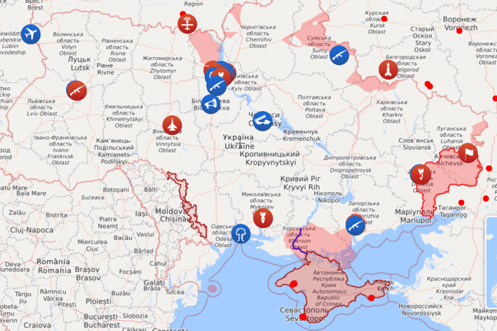 E piora. Minutos após o discurso, a Rússia inicia a invasão da Ucrânia com o envio, por Pútin das “tropas de paz” (As definições de “cara de pau” foram atualizadas). O mapa interativo da Ucrânia está assim, no momento que escrevo esse texto :