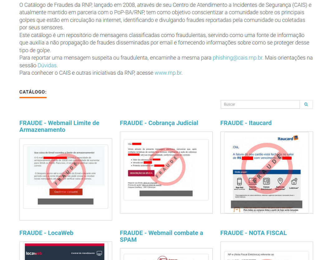 lLançado em 2008, através de seu Centro de Atendimento a Incidentes de Segurança (CAIS) e atualmente mantido em parceria com o PoP-BA/RNP, tem como objetivo conscientizar a população das fraudes e e-mails de Phishing.