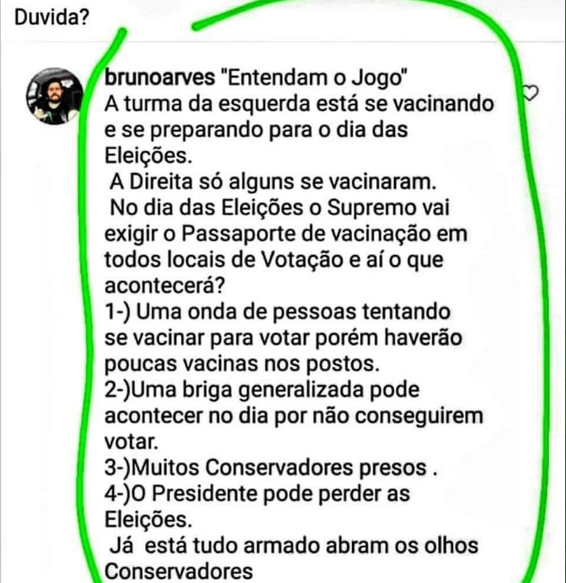 E mudam as balizas como loucos, no inicio era um plano da zelite para reduzir a população em 6 meses (com que finalidade?!), depois virou um plano pra injetar chip na população, depois para injetar 5G, depois pra matar os atletas (que se enchem de trembolona). Chegaram até ao absurdo de comparar vacina com estupro (imagina que legal seria isso pra uma vítima de estupro de verdade). E o argumento imbecil da moda é o de “O Estado num manda em mim lalalalalala o Estado num manda em mim lalalalala…”